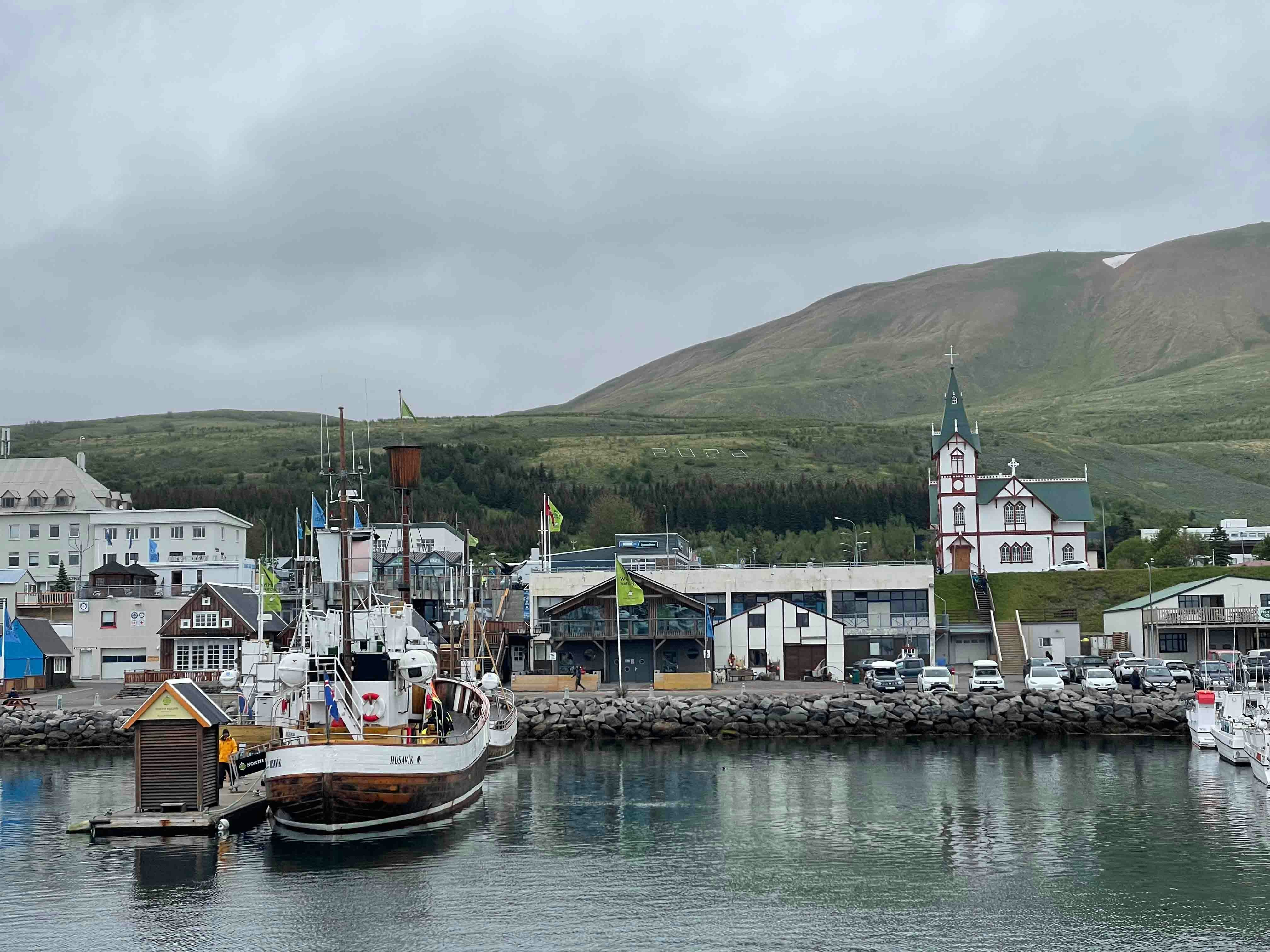 欢迎来到胡萨维克港口前沿——这片海岸线是冰岛北部小镇胡萨维克的心脏与灵魂。在这里,您可以尽情沉浸于渔船忙碌穿梭的景象、海湾的壮丽风光,以及夕阳西下时将一切染成金色的绚烂晚霞。这片区域充满了地道的生命力与人情味,是体验小镇日常脉搏的最佳去处。